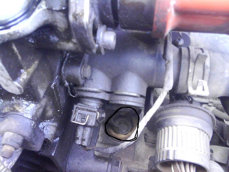 Това, което си го оградил с червено изобщо не наливай масло оттам. Тая тапа служи да се види белязката на маховика, когато се прави презацепване на ангренажа. Затова е оставена там тази тапа със съответния й отвор. Болтът за наливане на маслото при скорости като твоите (според мен са 085) е наврян на доста скапано място и е с вътрешен шестостен, но забравих кой номер точно ключ му пасваше.