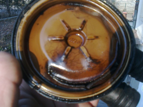И така отварям клапана и вътре неприятна гледка . Не можах да намеря платно и залепих масло устойчива гума ,събрах всичко запалих и двигателя мърка . Но след 40км отново почна да придърпва ,явно гумата не може да поеме разширяването и се е отлепила. Сложих обратно корковата тапа ,маркуча го изведох както едно време на жигулитата .До Бургас никакъв проблем работи както трябва .Ще измина поне 300км и ако всичко е нормално сменям клапана .Нов с поръчка от Немско -120лв.