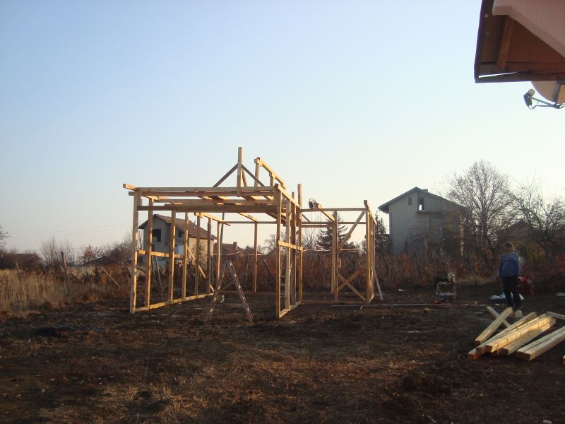Дойде и щастливия ден за мен да мога да отделя време и малко средства да си построя гараж. Никога не съм имал собствен такъв и ми е било голяма мечта. ТА накратко каква е идеята. Размерите са 6 на 8м. като има стеснение в предната част за да се получи като верандичка пред гаража с размери 2 на 3метра. Конструкцията е изцяло дървена с греди 10/10см височината на гаража ще е 2.7м. Мисля да има канал в началото до вратата, на който размерите още не съм ги измислил така че да ми е удобен. За таз година мисля да направя дървената конструкция и евентуално да затворя стените / за покрива финанси няма/ Стените отвън ще са с гипсфазер /бракуван/ от сметището на Кнаув във Видин. Проверено това ще е най-евтиния вариант