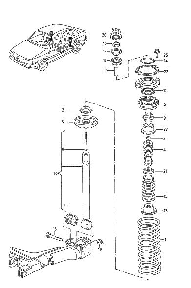 Според ЕТКА,се използва само при Пасат В3 (не ги дели на седани и комбита т.е. явно се използва и в двата типа купе).След 93-та няма опция за self-leveling и всички В4-ки ги дава само с едно окачване (стандартното).