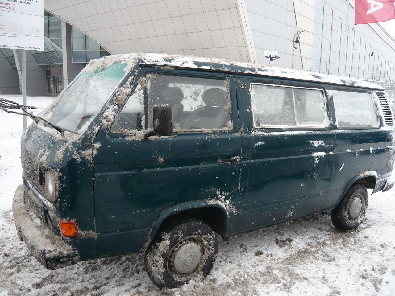 Става въпрос за Фолксваген Транспортер произведен 1985г. Бил е военен (има култови надписи вътре, които не исках да трия :mrgreen: сега е друго зелено – по симпатично. Махнат му е бензиновия мотор и е сложен дизелов 1.6 55кс. Закупен е от мен през м.Август 2011г. От тогава водя книжка с всичко, което съм свършил по него. Направено е пълно обслужване на мотора, с нова водна помпа с корпус, оригинални масла на Тойота, смяна на масло скоростна кутия пак тойотовско. Ремък и ролки, ремък алтернатор – водна помпа. Нов акумулатор, почистване на капак клапани и пр. Сменена почти цялата предница в Пан сервиз. Нов антифриз и обезвъздушаване. По мотора работи човека, който обучава механиците на Тойота. Работили сме заедно с много желание. Автомобила по километраж е на 73000км. Има аларма за ремонт (изключил съм я) има козметика за правене вътре. Отвън е много слънчев за годините си. Има си всички седалки, нови фарове и иднустриален балатум по пода. Има разбира се забележки, но е симпатяга като цяло  Бусчето е с 4 гуми Барум които не са прекрасни. Цената която мисля да му обявя е 1600лв за желаещите да се пазарят, за нежелаещите - 1500 ;).