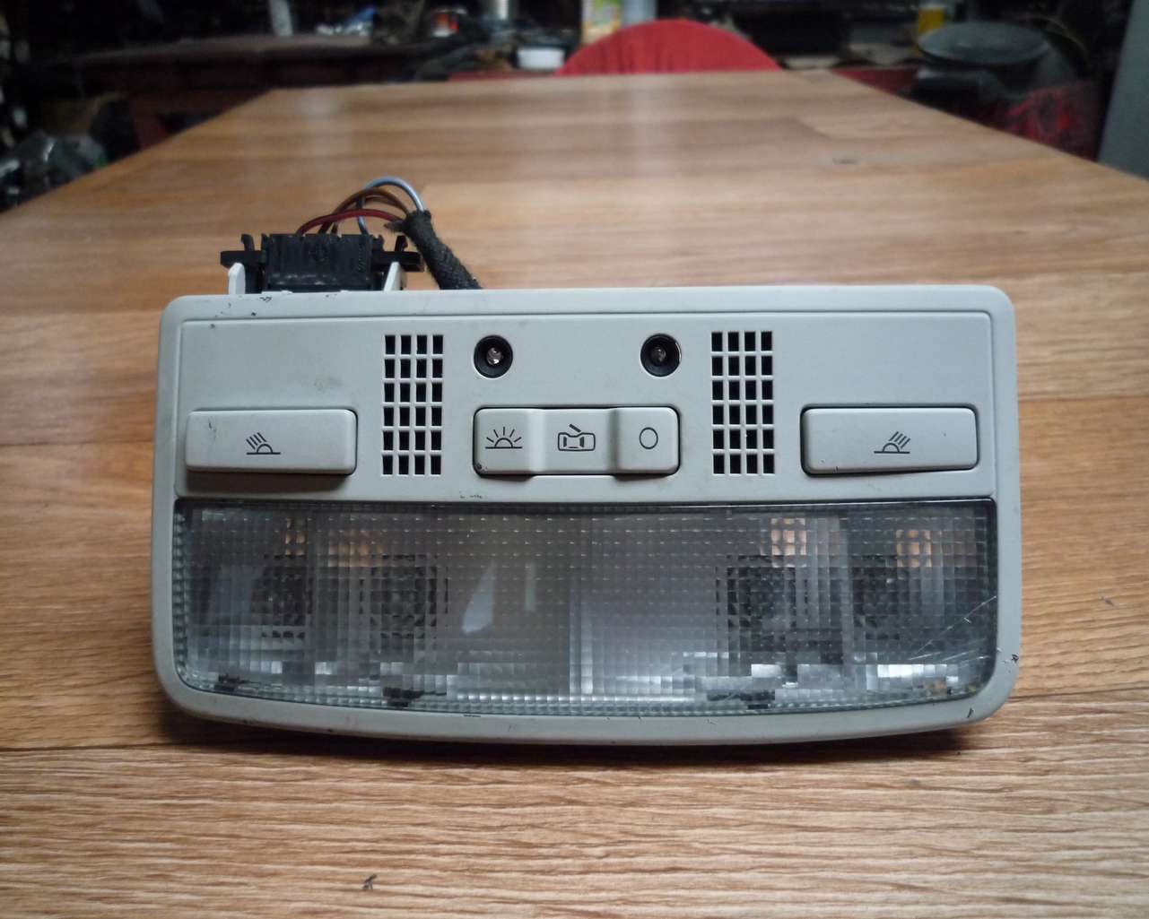 Освен тези два червени диода които светят, бутоните на плафона са също осветени.