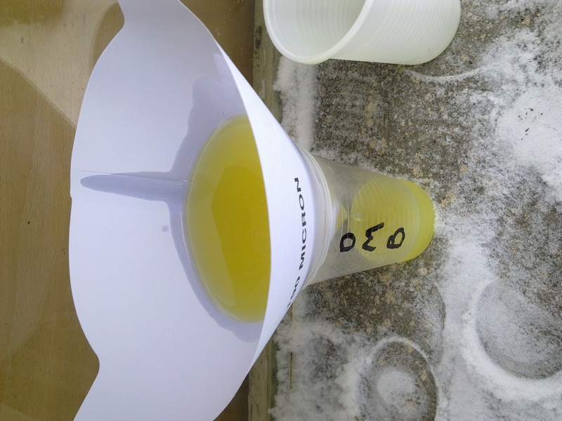 Днес приказвах с хора които си разбират от работата .Като им споменах ,че ми трябва филтърна хартия от 10-12 микрона фитруемост ме погледнаха странно.Впоследствие ми стана ясно,че то топла нафта трудно ще върви на "самотек" през нея,пък какво остана за "изтудена"...Дадоха ми една която се използва за лабораторни цели ,но ме предупредиха ,че пак най-вероятно няма да мине и през нея(говорим за самотек).Стигнах до "задънена" улица .Чудя се вече дали да не ползвам онези филтри дето са за прецеждане на автолакове ,на едно место видях ,че са по около 190 микрона .Не знам (не мога да намеря и и нформация подходяща в нета) само си мисля дали ще е показателен експеримента и с тези "бояджийските" филтри .Идеята ми е да взема пет чаши ,да им сложа по един такъв филтър и да налея по 100 мл.нафта и да засека съответно какво количество нафта се е "промъкнала" през всеки един филтър.. Приемам идеи и съвети..Пробите са все още във фризера..