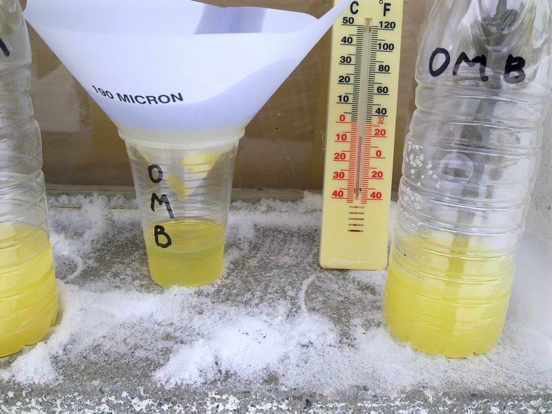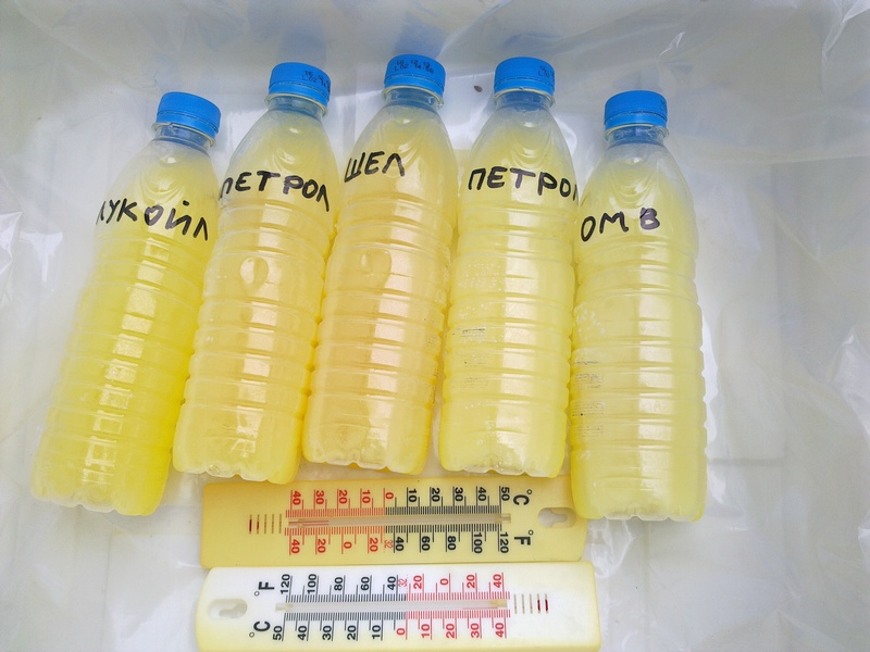 Интересен експеримент с интересни изводи! Според него излиза, че нафтата на Лукойл е най-добра за студа, а прехвалената на ОМВ е най-зле! :deal