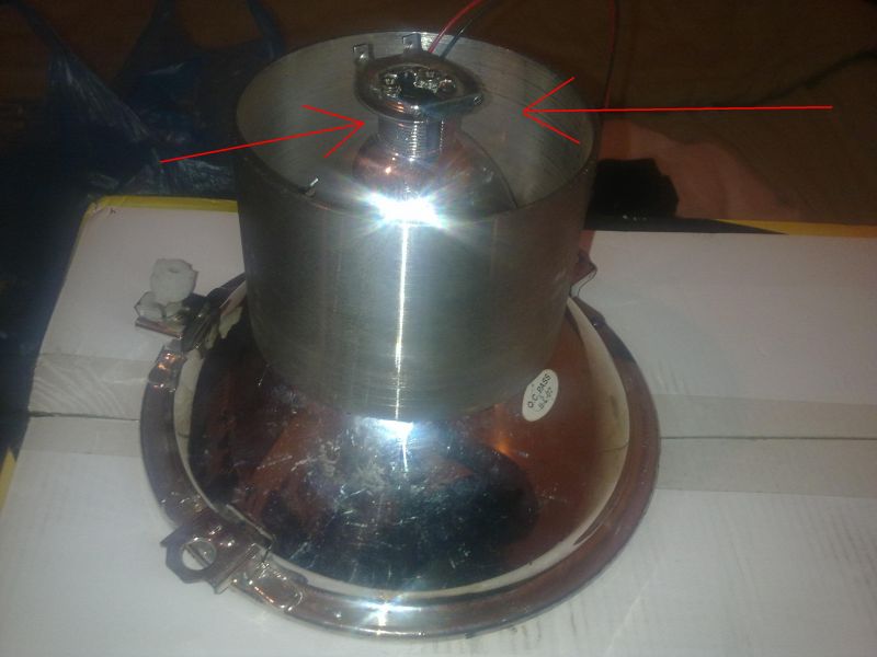 най вероятно тръбата ще се закрепи към рефлектора със заварка от сребърен припой със сода каустик, от горе ще има тънък слой силикон -