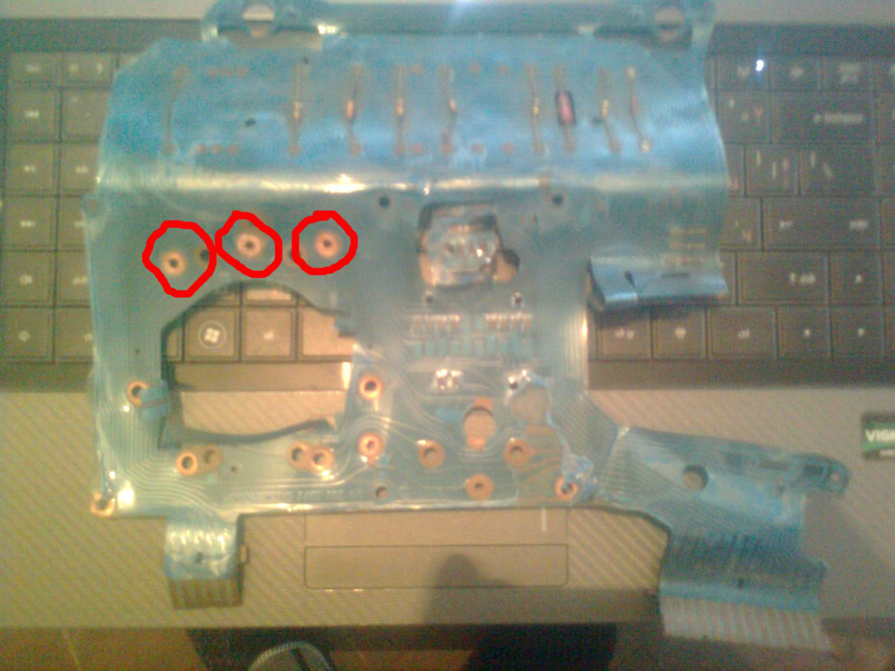 с червено съм отбелязал крачетата на на обортомера на мотометер таблото ,а другата платка е на ВДО таблото което няма тези отвори.