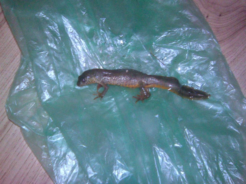 Да покажа(като изключим към десетина каракуди) къв Дзвер хванах на въдица в едно от езерата по нашия край. Доста се почудих кво по дяволите е това и вечерта се поразрових из нета и останових, че е Алпийски тритон. Такова чудо не бях виждал никога. Бях го сложил в един буркан за да го покажа на баща ми, но след като прочетох, че е защитен вид отидох и го пуснах обратно във водоема.