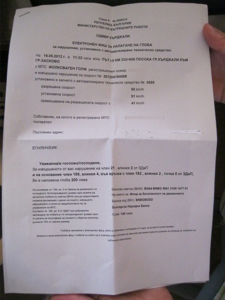 Madwifi, според мен би трябвало да отпадне, но не знам дали и как се обжалва електронния фиш (забравил съм закона
