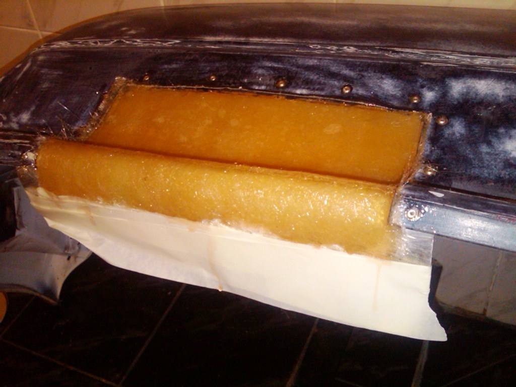 Нямам много време да работя по колата и по нещата с които се захванах, но като цяло има малък напредък. След като китосах бронята направих още един слой фибростъкло и смула, но с около 2-3 см. по-широк. Един вид за да покрие пукнатината, която е между смулата и пластмасата.