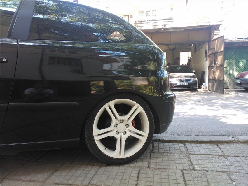 17 ки от ФР в лошо състояние пребоядисах ги бели с гуми 205/40/17 фланци 10мм,бяло фолио на тавана и огледалата,антена от пасат 2008г