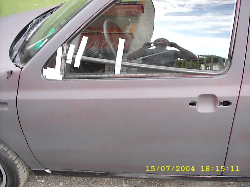 Когато Радостин /старозагорския гений на четката, този Пикасо на тенекиите, този Микеланджело на пръскалките/ започнал да да сваля водните боички на софийския шибаняк се оказа, че боята пада с едно докосване с машината, без НИКАКВО усилие. Свалил лайняното сиво точно за 2 часа, а иначе биха му били нужни поне два дни, ако е добре направено. Снимал съм две клипчета как сваля боята по предния ляв калник с едно докосване и как се показва червеното мигновенно.