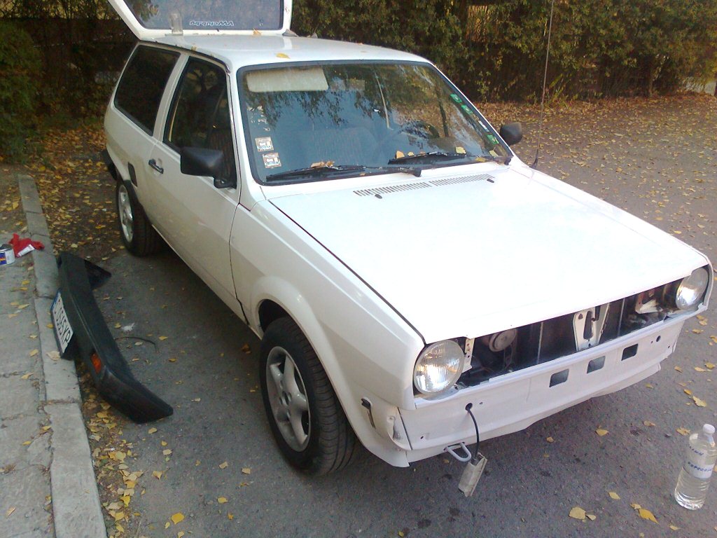 Колата е 1985 година HZ мотор и беше в що годе добро състояние, но на прибиране от Крушуна тази година ми изби гарнитурата на главата (окончателно), та започнах леко по леко да я разглобявам с цел подмяна на мотора. Доста време се чудих дали да е този или друг или въобще дали цялата кола да не замие към някой пункт, но в крайна сметка реших, че ще я оправя. Проекта за сега върви бавно, но капка по капка нещата се случват. Свалих цялата предница и започнах да чегъртам от ръжди и боклуци всяко болтче. Голяма част от нещата вече са изчистени и грундирани, което ще се види по- долу в снимките. Междувременно ми изпадна едно друго поло и средствата за закупуването му ме върнаха малко назад, но то е така да се каже само "за возене". :)