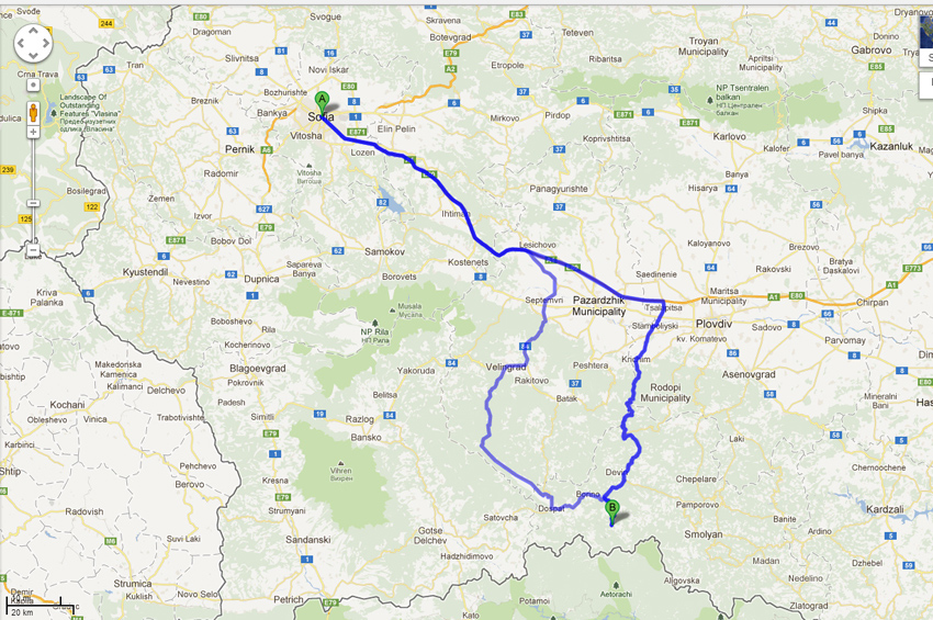Проблема е че ми се минаваше през Доспат. Гледам че от там мога да хвана Батак-Пещера-Пазарджик и пак на магистралата