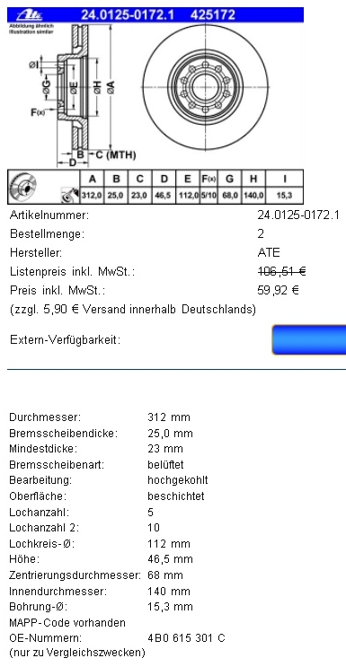 На предната ос дисковете са АТЕ Powerdisc, който са със следната спецификация: