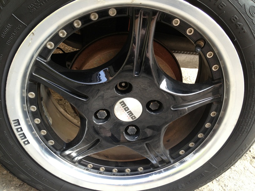 Както се вижда от снимките в близък план, новите стари джанти са напълно осрани по борда. Под лака е влязла някаква гадост, която сваляне няма. Имах доста идеи какво да причиним на тези джанти с Радо Боята, но нека да има съспенс и вълнение. Утре ще пусна снимки на крайния продукт.