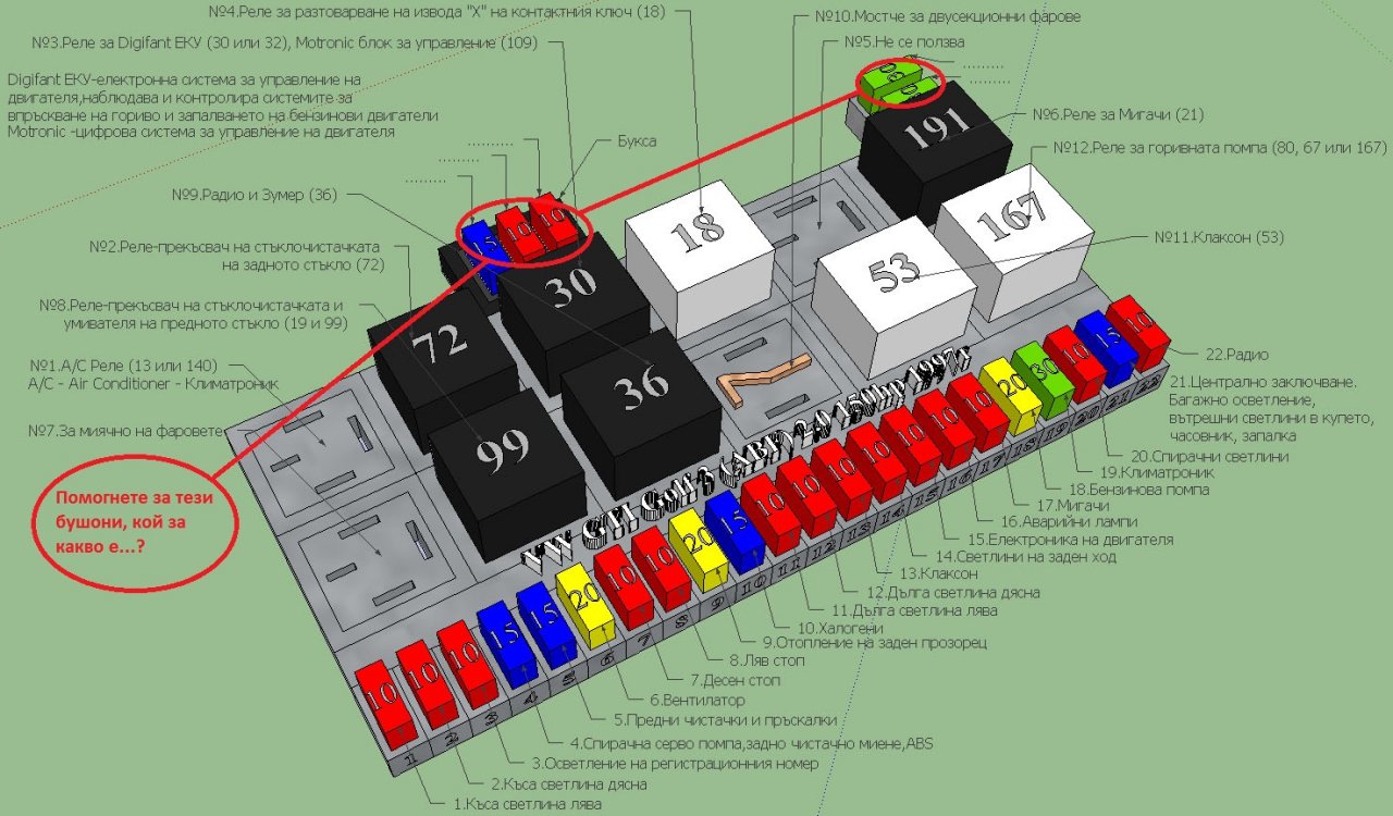 vladovelin написа:Преди да стигне до бушона напрежението минава през контакт на релето за бензиновата помпа 167.Извади релето свали му капачката и го постави без капачка. наблюдявай при старт дали сработва релето.Провери му спойките за спукана спойка.Натисни му клапата с ръка и слушай помпата дали работи.