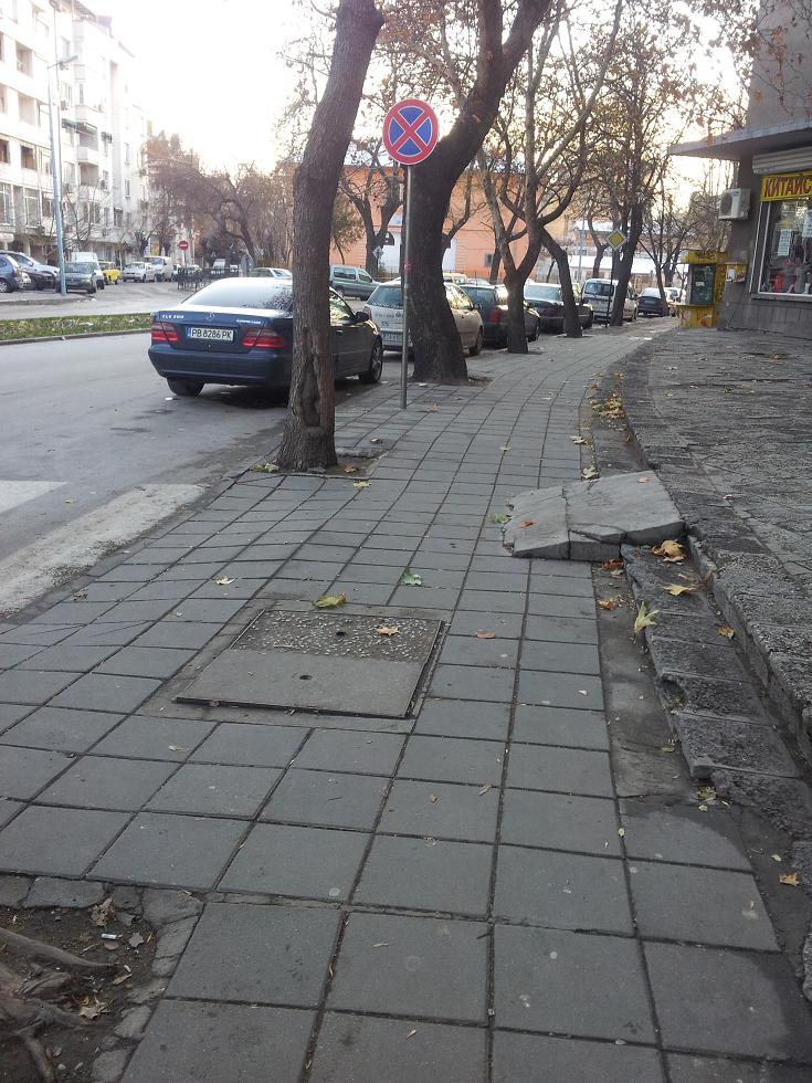 Това си е паркинг отстрани на самия булевард, но на колегата явно му се е сторило опасно да я остави на определеното място за паркиране, та за това я е поприбрал малко....