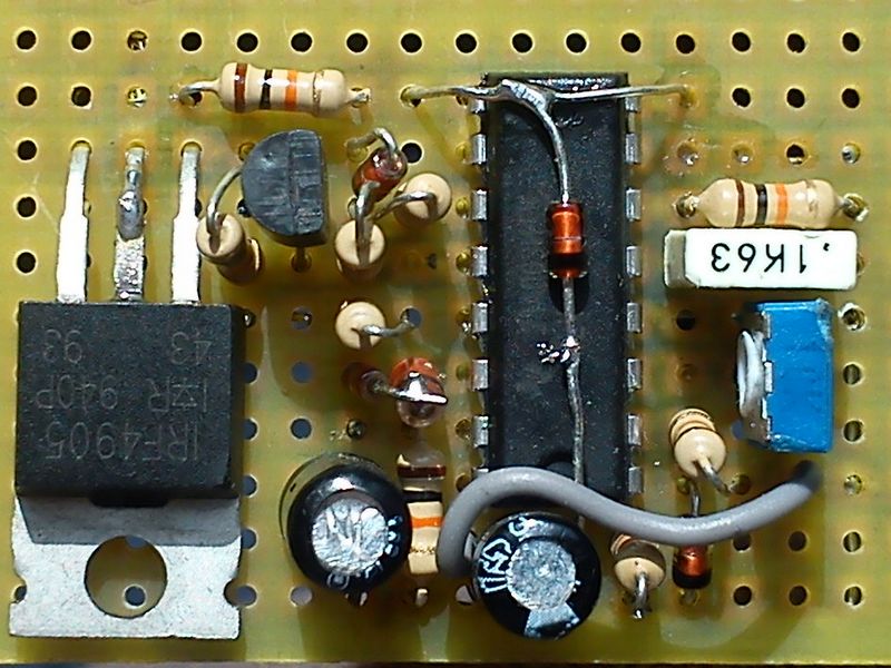 IRF-a изисква малък радиатор . Правих го в SMD повърхностен монтаж, и цялото стана с размера на транзистора, малко по-голямо от фас на цигара (от едната страна частите, от другата IRF-a) , но след 15 минути, някой от частите се разпоиха и изпаднаха mhihi . Решението дойде с 4 квадрата меден кабел на изхода, с дължина от около 10см. , запоен за корпуса на транзистора :wink: