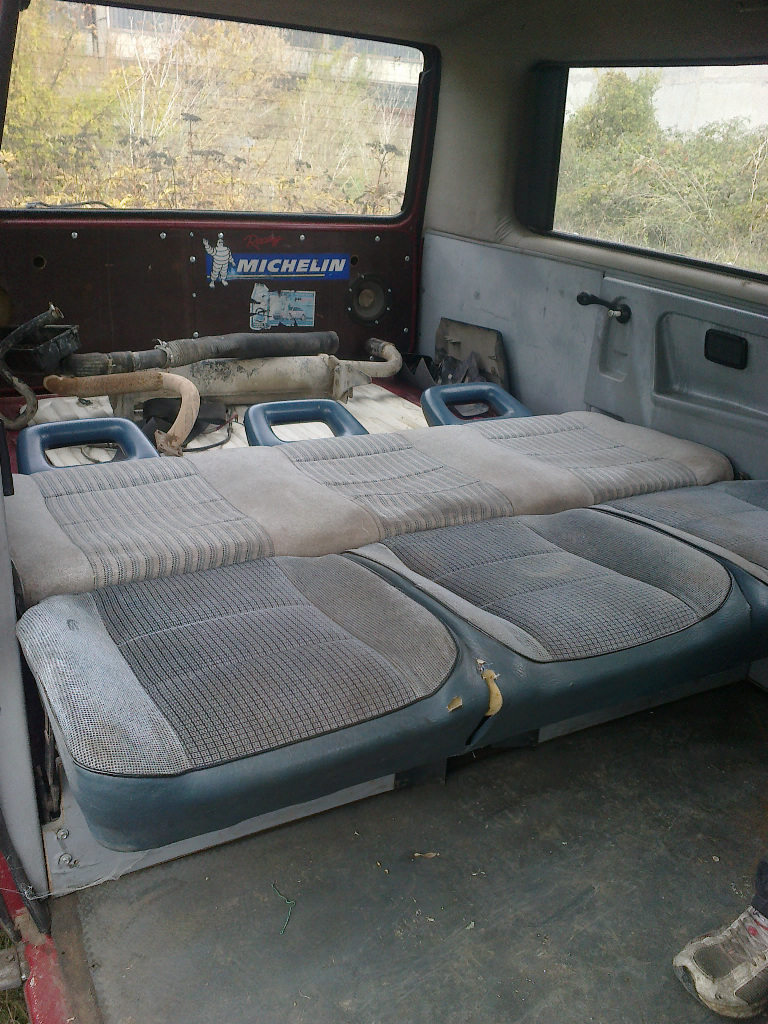 До тук 1600 лв. ако има мераклии за други части, съответно горните цени ще бъдат намалени.Купето ще дадем на скрап, да избия транспорта до Ст.Загора и обратно.Обърнатата седалка зад шофьорската я запазвам за мен.Ето снимки на буса:
