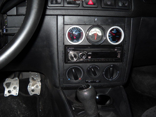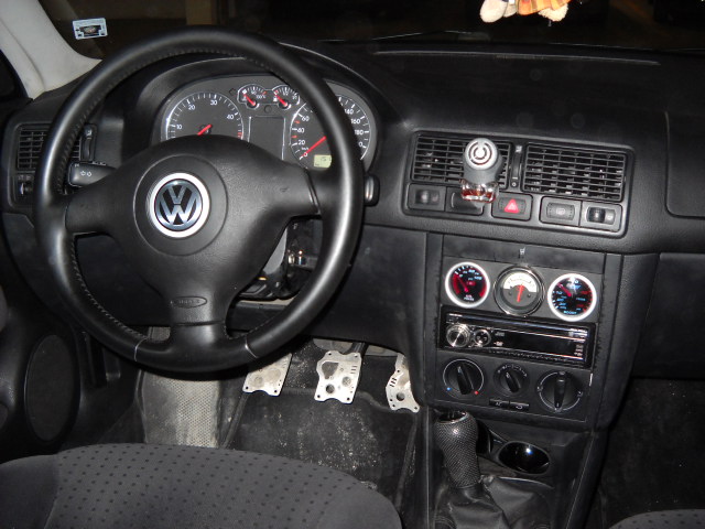 Понеже исках да си монтирам табло от Бора спорт,но моята кола няма КАН шина си поръчах само циферблат и от едно Пасатско табло взех ринговете и стрелките за да си направя собствено табло.Преправих и едни алуминиеви врътки за Голф 5,че да паснат на климатика на 4-ката.Закупих и волан от ТТ,който претапицирах и му смених емблемите,за да пастне в Голфа,исках оригинален волан от 32-ка ама много скъпи мамицата им и рядко излизат за продан.В крайна сметка резултата много ми допадна.