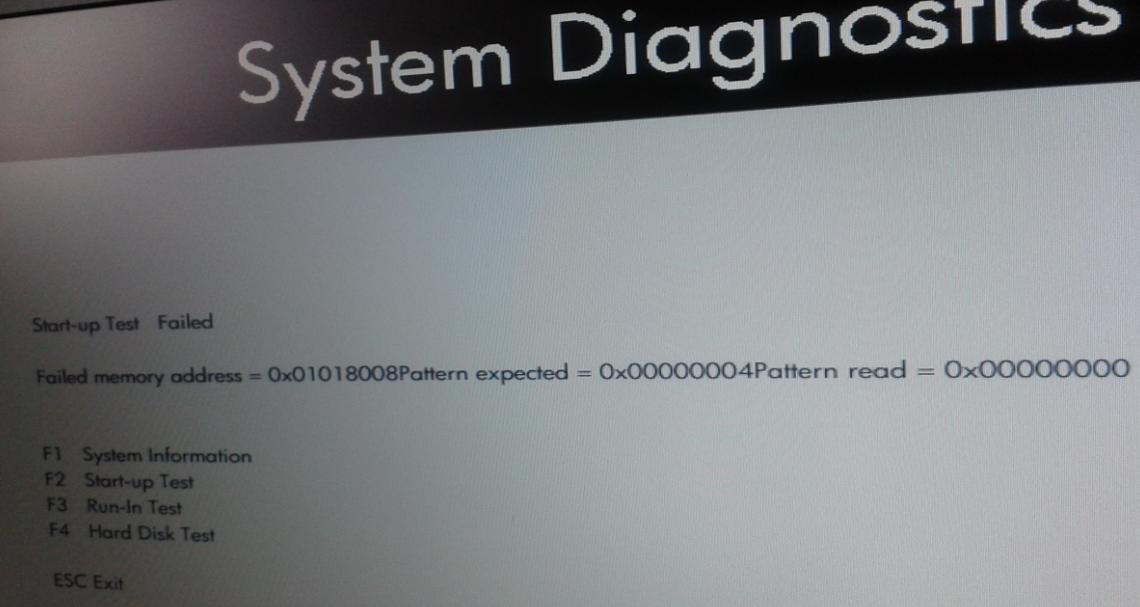 failed memory address = 0x01018008patern expected = 0n00000004patern read = 0x00000000