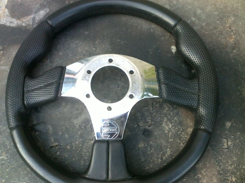 Колеги, малко развитие по темата. Благодарение на колегата Lubo93 се сдобих със спортен волан SIK. Воланът е като нов, мисля, си, че не е ползван никога, но ще претърпи някои съществени промени. Ще постна снимки след интервенцията, ето го в заводско състояние: