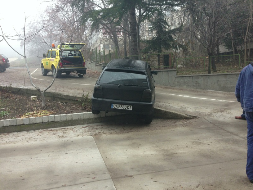 В първия работен ден отидох към колата, викнах пътна помощ /в такива моменти човек се радва, че има златна карта на СБА/. Колата я бях паркирал на едно особено място под наклон, че да не мятат пиратки по нея в новогодишнат лудост. Мързеливия водач на спасителния автомобил ми вика