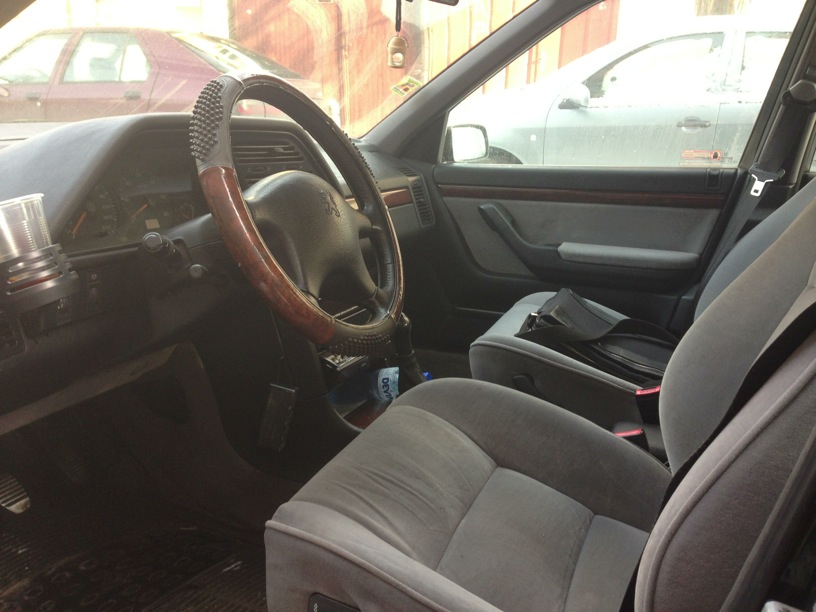 Така. Както се вижда от снимковия материал, състоянието е напълно трагично. Толкова са изгнили праговете, че като пратих снимките на Радо бояджията тоя ме заплаши, че ако му я докарам да я прави ще избяга в Русия като Жерар Депардиьо, защото там е велика демокрация и не карат пежо, а волга. Волгата не гние, защото са правени от немски каски. Освен това колата няма никакви лайсни, защото ги махна предишния майстор. Няма и да има, когато приключим с колата. Няма и емблемки и буквички, защото като приключим с колата хората ще се чудят какво майка му стара мина покрай тях току що. Защо да ги улесняваме с разни надписи като "пежо" и разни емблеми на изправен лъв в хемороидна криза.