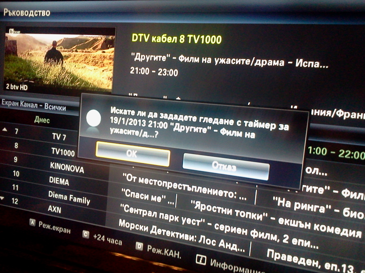 А ето и функцията, която ми позволява да избера някое предаване - телевизорът автоматично превключва на него като му дойде времето: