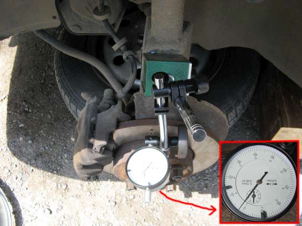 За главината челото се мери максимално близо до външния ръб. Допустимата стойност е от порядъка на 0.02-0.03mm.