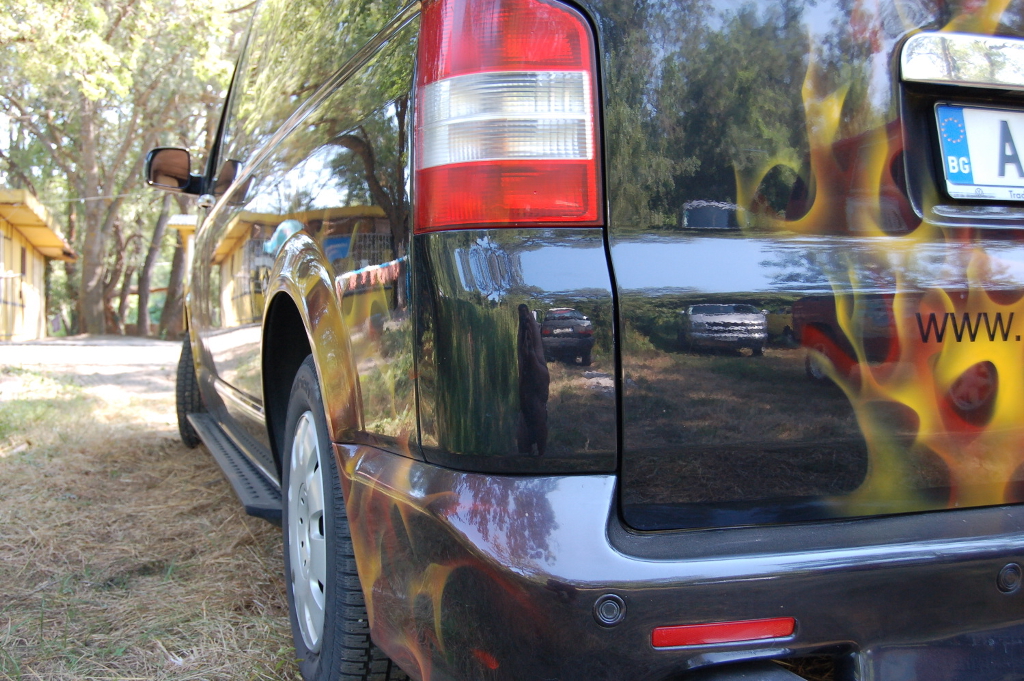 Т5 - 2бр. Черния къстъм бус с пламъците на Коцето от Айтос и клубната Т5-ца.
