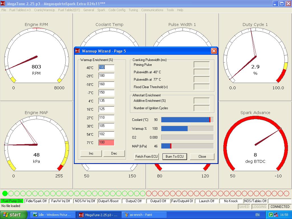 Някой да си има идея какви долу горе да са стойностите на warm up, на 1.8т с мега. Че всичко е наред ама студена колата е адската мъка. Пали и гасне веднага, а не ми се иска да я държа на обороти още студена.
