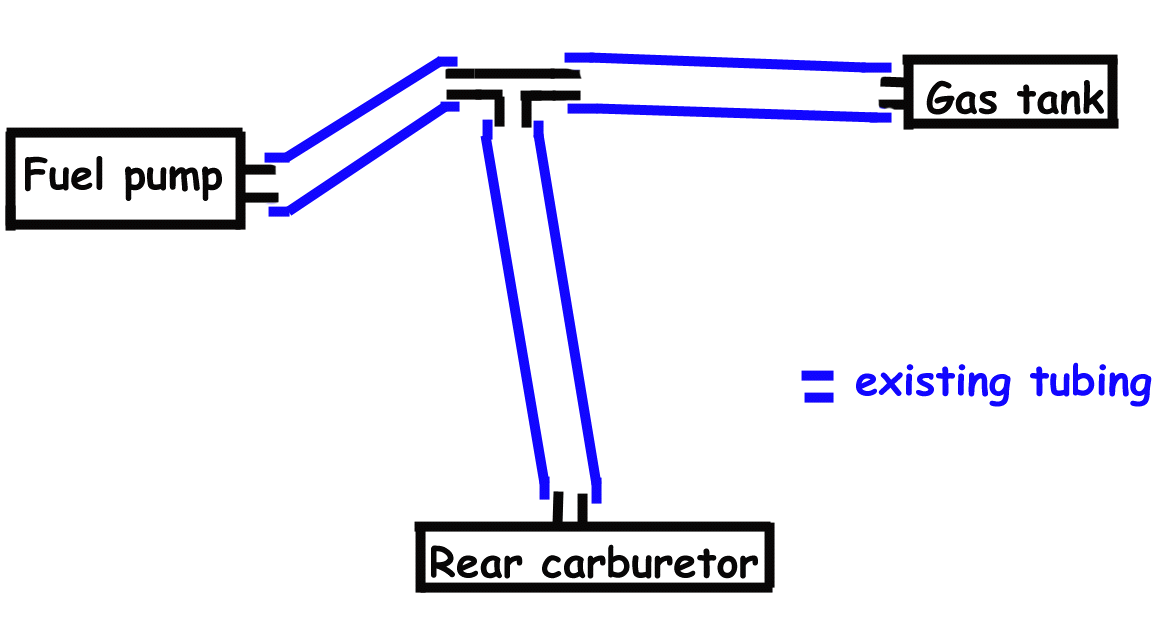 зазковата помпа е добър вариянт но незнам до колко е надежна предлагам схема за свързване както бих я направил аз купуваш си троиник 8мм и вкарваш двата бензинопровода които до сега са били налягане и обрато третият щуцер на троиника го свързваш към зазковата помпа карборатори с обратно гориво няма след като се напълнят чашките подплаваците се затварят и в този момент налягането се вдига и помпата спира щото е направена така ...... начинът за които споменава колегата с ристриктор не ти го препоръчвам има вероятност на празен ход да преливат а на пълно натоварване да не достига гориво