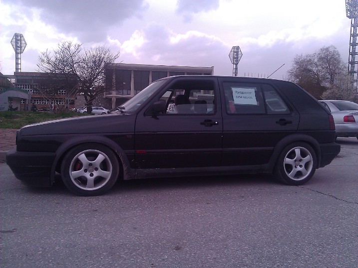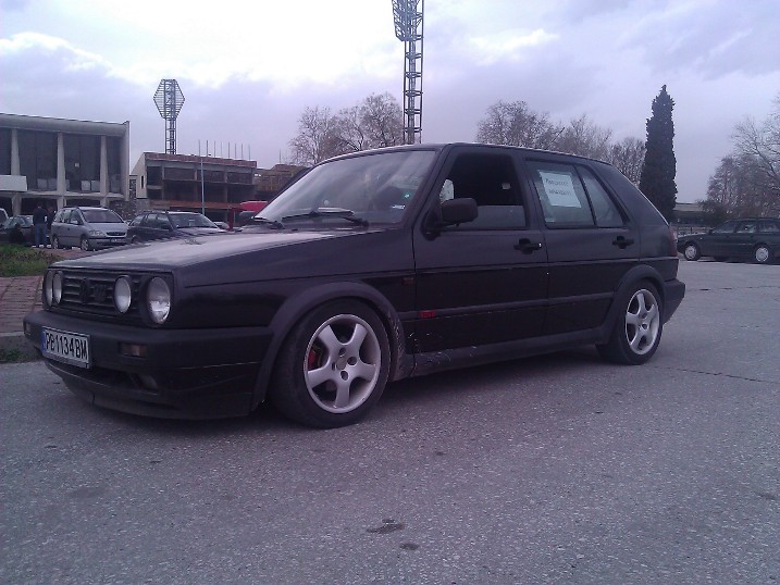 Колата е Golf 2 GTI 16V KR произведена 1991 година, 2007 година приятел я внася от Италия. Колата е с толкова ниско окачване, че там я товарят с мотокар, а тук при свалянето от автовоза изкъртват щипките на предната броня. За жалост нямам снимки от тогава :banghead , но окачването е същото само пружините са сменени за да може да се кара по нашите пътища.