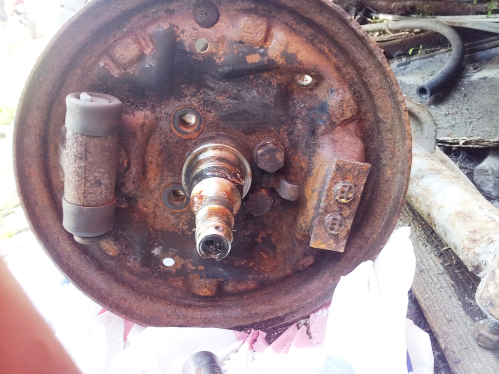 В момента е в това състояние.Разглобена е цялата задница,моста,задните барабани,резервоара,ламарините къде държат цилинтърчетата и гърловината са изтъркани и боядисани.След като купя новите тръбички ,маркучи и цилиндърчета всичко от зад се сглобява и се прехвърляме на предницата.