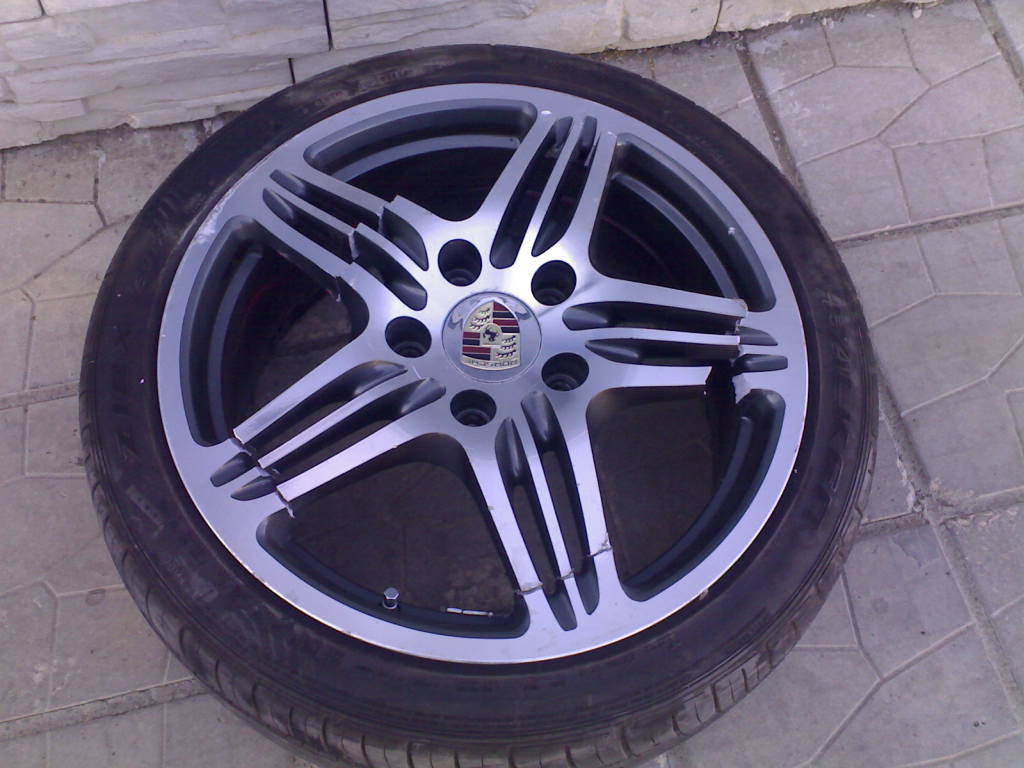 След удар в бордюр с около 20км/ч!Поне така казаха в сервиза,в който я видях.Да уточня,че е някакво менте,не оригинал!