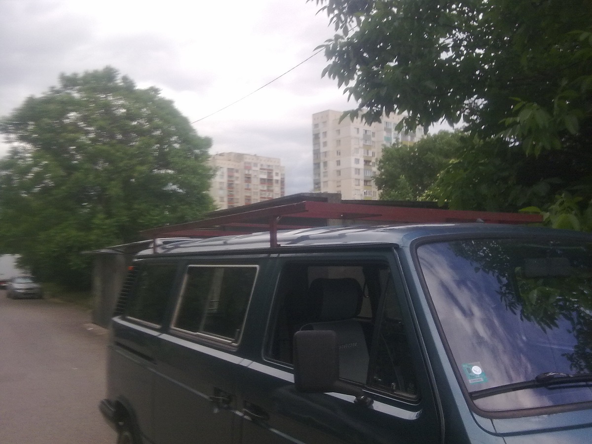 И така....Предвид предстоящото пътуване към 3-тата балканска среща в Турция....изникна нужда от багажник на тавана.....Предвид многото багаж ,който се очертава да влачим на там.До съседния блок мернах един Т3-товарен, който има подходящия за целта багажник...свързах се със собствениците и стигнахме до сделка.