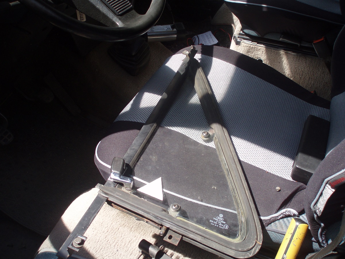 Но съчетах размонтирането на стъклата с поставянето на малки отваряеми триъгълни стъкла , каквито моя Мултиван учудващо нямаше Тука пак донор се явява Синята Хала с лявото стъкло, а дясното го взех благодарение на Пепи 3196. :beer