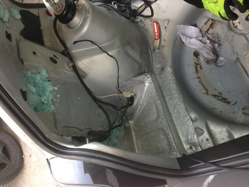 Но както се оказа шумоизолацията дори не беше сложена правилно, без притискане с пластмасов валяк на всеки отделен панел и с доста зор успях да одера около 90 процента от всичко, каквото беше налепено по вратите. Дрането на материала по тавана беше детска игра. Дрането на вратите беше едно чудно мазохистично изживяване, което ми коства около 30 нарязвания по ръцете - от по-питки към по-дълбоки.