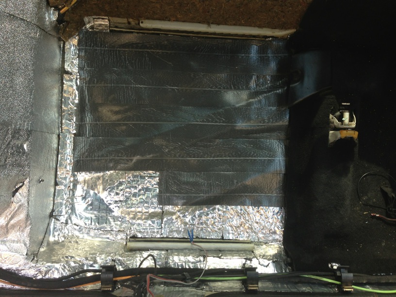 Покритието на тавана беше 99 процента, но влагането на иначе висококачествения материал на STP /големите сребърни меки панели, които свалихме/, не върши работа сам по себе си. Той се полага върху друг вид материал, комбинация от битум и алуминий - като този от вратите.