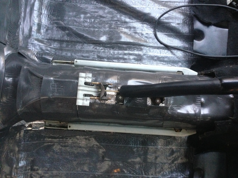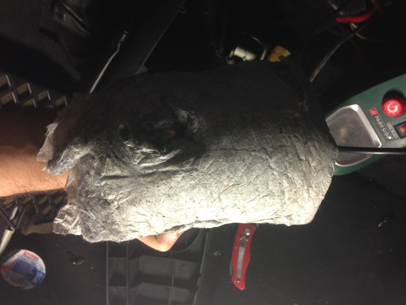Особено много внимание отделихме на шумоизолирането на самата скоростна кутия. Там се наложи да се прояви ама много въображение. Миро изобрети нещо като презерватив от бутилка, облечен в алуминиево-битумния материал, допълнително опакован в парчета от оригиналната вата. Това беше нахлузено на скоростния лост и се получи нещо ... чудно:
