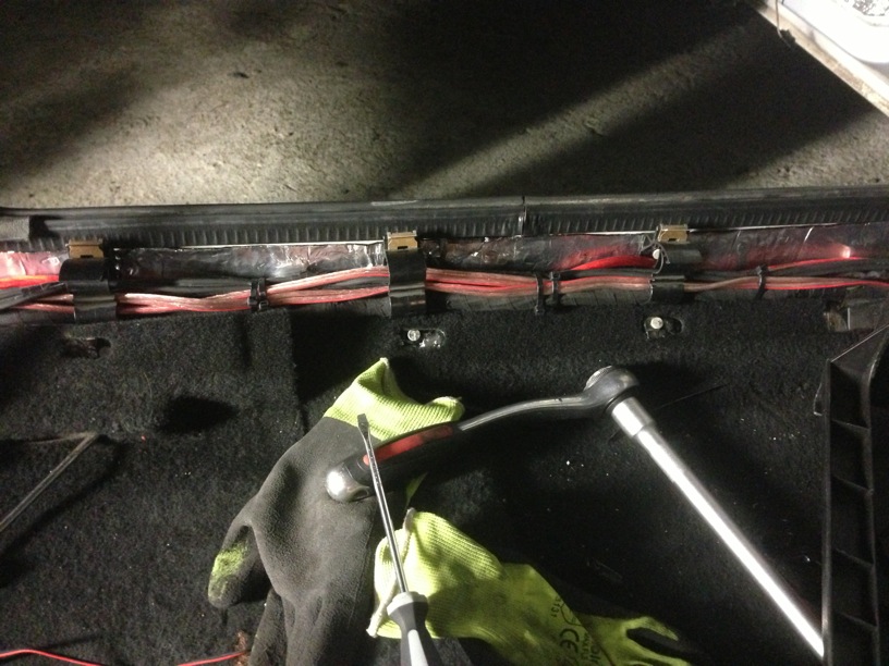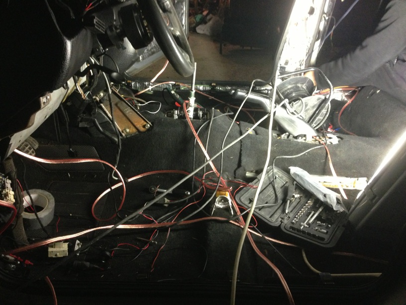 Всичко досега беше посветено на една основна цел - шумоизолиране от външен шум и елиминиране на вибрациите от музиката вътре в купето. Термоизолацията е страничен положителен ефект. Преокабелихме голфа с висококачествен кабел - 4 квадрата. Рано или късно тонколоните ще започнат да ми идват слаби, а с 4 квадрата мога да включа ... меко казано мощни тонколони. От стария собственик наследих страхотен захранващ кабел към крайното стъпало в багажника, който тежи сигурно два килограма. Уникален. Следват снимки на окабеляването: