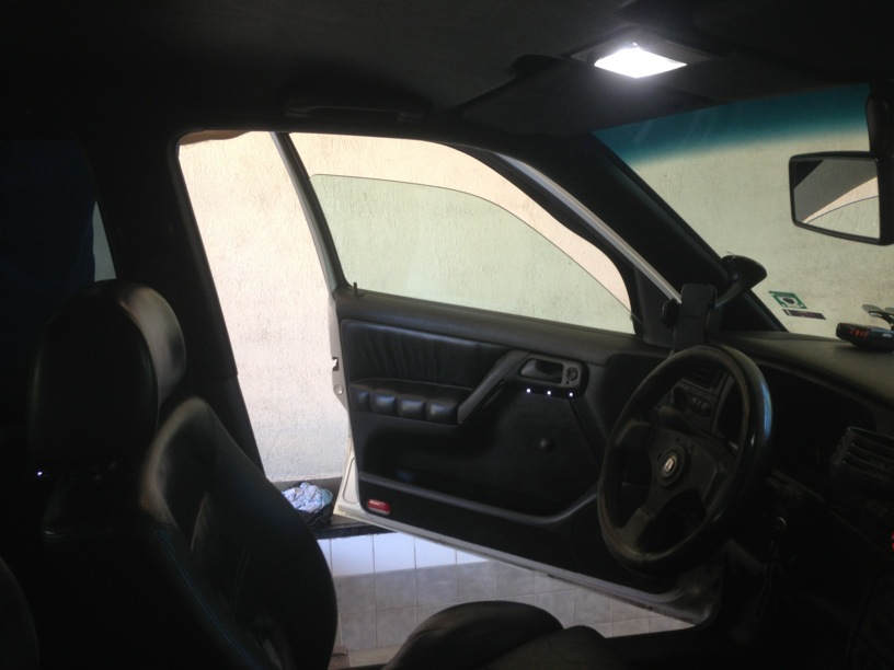 Преди много време бях видял един колега, който беше набил светодиоди във вратите, за да му осветяват земята - предпазва от стъпване в локви, препъване в прагове и прочие. Доразвихме идеята на колегата и така разположихме светодиодното осветление, че да осветява и вътрешността на колата при затворени врати. Много удобно и работи. Да не говорим колко красиво изглежда нощно време, а и обозначава отворена врата нощно време за разни минаващи автомобили: