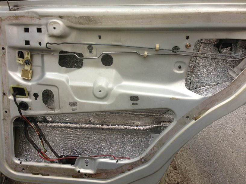 Един от най-важните моменти при шумоизолирането на автомобила са вратите. От там прониква огромно количество шум и ако не е правилно направено си е чист разход на време и материал. В този процес се постарахме да спазим всички възможни правила. Обезшумяването е трислойно, от два различни вида материали. Битумно-алуминиевия материал не е професионален и с малко под половин милиметър по-тънък от професионалните материали. Компенсирали сме със застъпване на материала при полагането му: