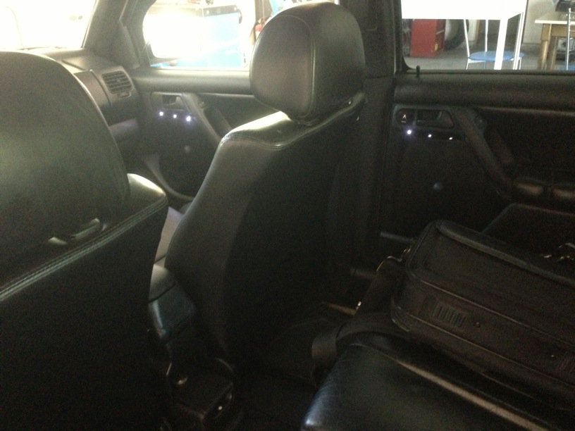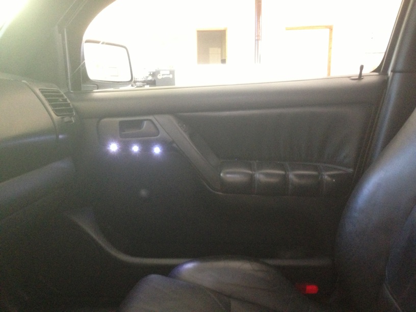 Преди много време бях видял един колега, който беше набил светодиоди във вратите, за да му осветяват земята - предпазва от стъпване в локви, препъване в прагове и прочие. Доразвихме идеята на колегата и така разположихме светодиодното осветление, че да осветява и вътрешността на колата при затворени врати. Много удобно и работи. Да не говорим колко красиво изглежда нощно време, а и обозначава отворена врата нощно време за разни минаващи автомобили: