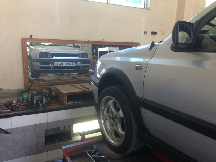 Това е. Следват снимките на новия голф в сглобено състояние с имплантирани от стария голф фарове, стопове, мигачи, салони и т.н. Наследих го с чуден кожен таван, който се върза с кожения ми салон на 100 процента и с много хубав ... спортен волан. Отказах се да боядисвам колата. Всички ми казват, че сиво-черното било много харно, но една част от мен още иска да го матира в черно. Най-вероятно никога няма да стане.