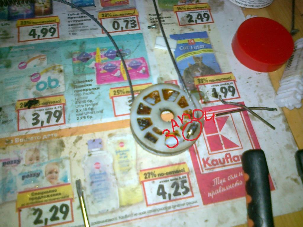 След като сте готови сглобявате нашинката по обратния ред, намотавате жилото на ролката и преди да затворите намажете с грес. Ето това е готовата машинка: