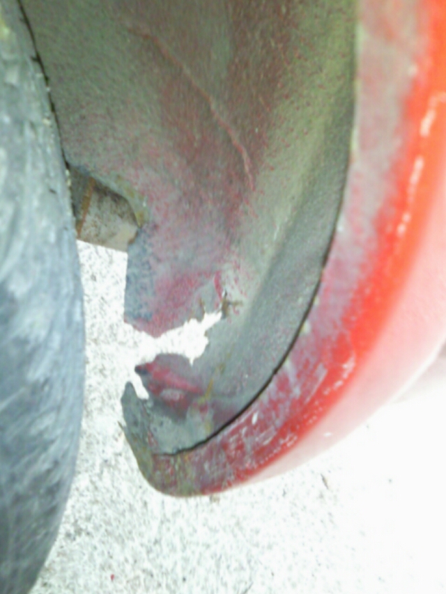 Стъклопласт и полиестерна смола ще ти оправи проблема. Със бормашина и телена четка махаш ръждата и наи вече покритието против ръжда (полиестерната смола не хваща в/у покритието). 100% ако го направиш така няма да ти избие ръжда от там а и става предостатъчно здраво. :)