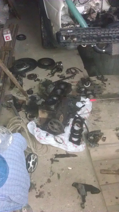 и така сложихме мотора всичко точно порадвах му се няколко часа и дойде и момента на ...Счупено бутало, отчупен блок, биела на осмица при първи цилиндър.. Всичко се случи вследствие от пренадуване с което неможах да се сборя(2 бара!!)