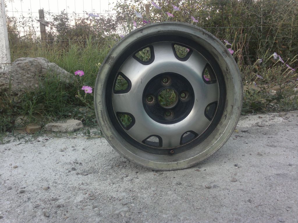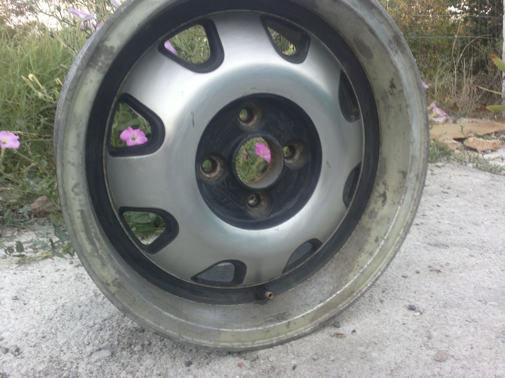 Ето и снимка на джантите , на снимката се виждат че боята бая поолющена и са мръсни с пайжени и т.н , но нямат заварка и криво , сега следва хубаво измиване и се приготвям с полирането и шкурките